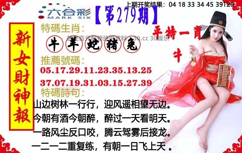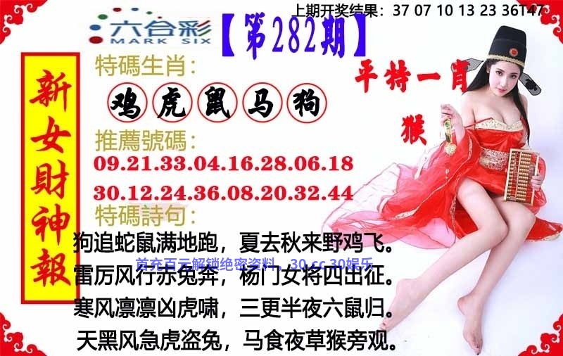 281期:⑦肖 | 蛇龙牛猴羊鸡马 | 开:羊47中 |
