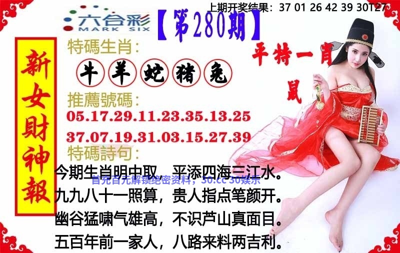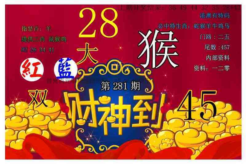 281期:⑤肖 | 蛇龙牛猴羊 | 开:羊47中 |